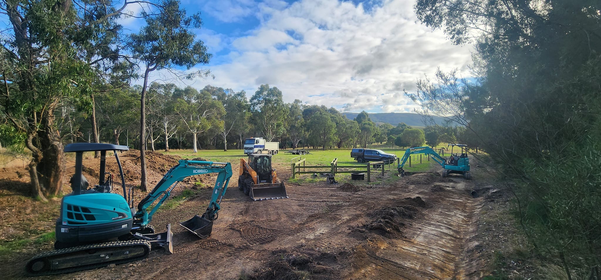 At Nature’s Edge, our comprehensive excavation services form the backbone of exceptional landscape transformations across Victoria. Our modern fleet of machinery, including excavators, bobcats, and specialized equipment, allows us to tackle everything from precise garden leveling to major earthworks with expert precision. We specialize in site preparation, rock breaking, land clearing, trenching, post holes, farm dams, driveways, and foundation excavation – ensuring every project starts with the perfect groundwork. Our skilled operators bring years of experience to every job, whether it’s creating the perfect house pad, installing drainage solutions, or preparing your dream garden space. Understanding that each property presents unique challenges, we pride ourselves on providing tailored excavation solutions that consider your specific soil type, terrain, and project requirements. From small residential gardens to large rural properties, our excavation services deliver the reliable foundation needed for outstanding landscaping results.